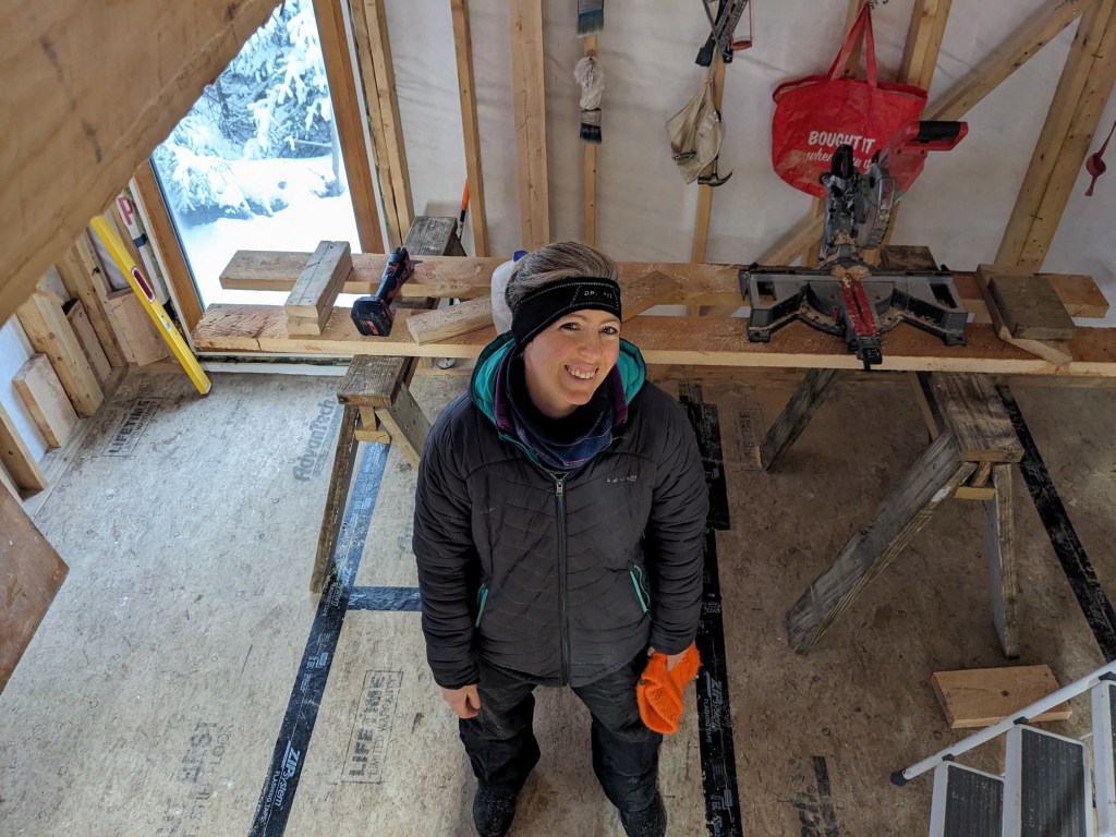 Kez was a driving force behind Bowhaven Cabin, selecting the perfect site location, designing much of the framing layout, and finding endless tools and supplies that her husband misplaced.